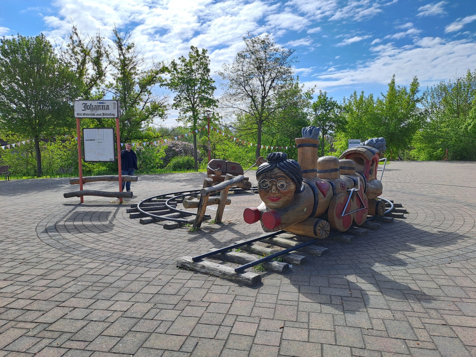 Johanna - die Güter Lok aus Jüterbog ist eine Installation aus Holz vor dem Bahnhof in Jüterbog.