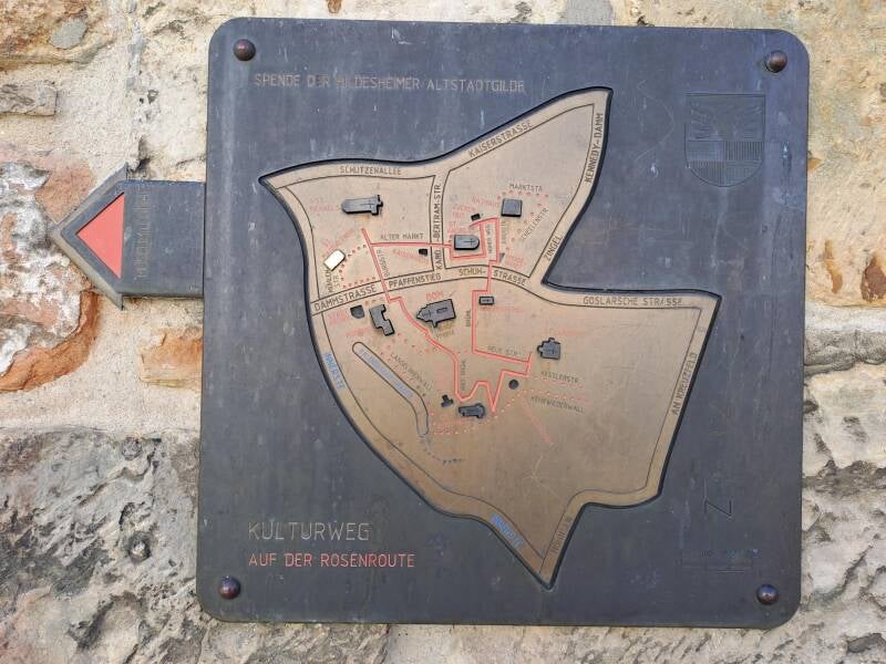 Die Blume steht für das Werden und Fortbestehen der Stadt – und dient als Symbol für den Rundgang. Gekennzeichnet ist der Weg durch über 150 in den Boden eingelassene Keramik-Rosen. Die Basistour, die vom historischen Marktplatz und zu den beiden UNESCO-Welterbekirchen führt, kann durch drei Erweiterungen ergänzt werden. Auf der Erweiterung „Fachwerk im Godehardviertel“ gelangen man/frau ins Fachwerkviertel, auf der Erweiterung „Keßlerstraße und Kehrwiederwall“ spazieren man/frau auf den Wallanlagen und auf der Erweiterung „Hildesheims schönster Garten“ stattet man/frau dem barocken Magdalenengarten einen Besuch ab.